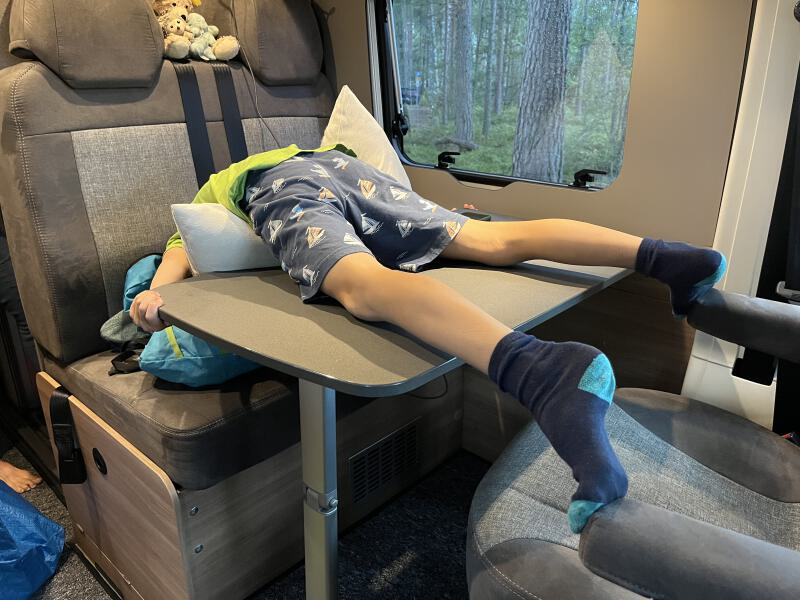 In Schweden ist das Wetter weniger stabil wie am Mittelmeer. Deshalb ist es empfehlenswert, flexibel zu bleiben und die Reiseroute bei Bedarf anzupassen, zum Beispiel eher die West- statt die Ostküste anzusteuern. Wir hatten Glück mit dem Wetter und konnten bis auf einen Regentag nur sonnige Tage genießen. In der ersten Woche war es mit bis zu 25 Grad sehr warm. Nachts wurde es recht frisch (bis 8 Grad) und mit aufgeklapptem Aufstelldach hat sich das innere unseres Campervans recht schnell abgekühlt. Unser Sohn schlief dort oben in einem etwas dickeren Schlafsack und hat nicht gefroren. Zusätzlich hatten wir einen elektrisch betriebenen Heizlüfter dabei, um es auch mit unseren Sommerdecken angenehm warm zu haben. So konnten wir außerdem unsere Gasflasche schonen. Eine Füllung hat für die kompletten 3,5 Wochen problemlos ausgereicht, da wir das Gas nur zum Kochen, Aufbacken und Wassererhitzen verwendet haben.
